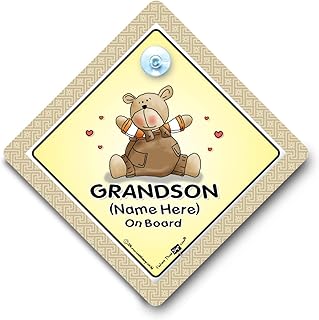 Grandson an Bord Autoschild,Brauner Bär,Personalisiert Baby On Board Zeichen,Benutzerdefiniertes Schild,We'Ll Füge Jedes Name um zu Erstellen Sie Ihr Eigenes A,A Auto Custom Stoßstange Aufkleber