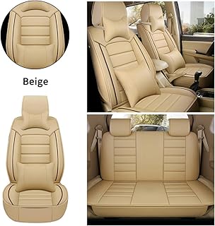 Muchkey Sitzbezügesets Autositzauflage 7-Sitze Alle Jahreszeiten für F ord Ecosport Kuga Edge Mondeo mit Kopfstütze Nackenkissen & Rückenkissen Stil F Beige