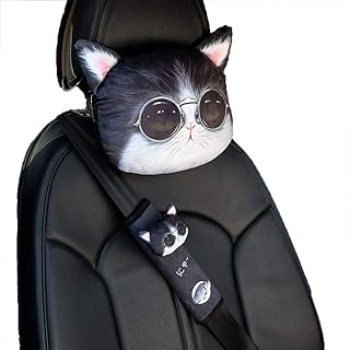 Nackenkissen 3D Hund Katze Cartoon Kopfstütze, Morbuy Sicherheitsgurt Umhängetasche Auto-Kopfstütze Sicherheitsmatte Autohalsstütze Kopfkissen (25cm x 26cm,Katze)