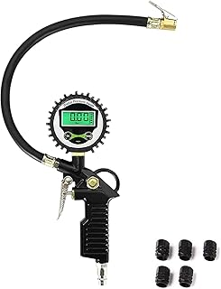 Trintion Reifenfüller Reifendruckprüfer 220 PSI Luftdruckprüfer Reifenfüll-Messgerät Reifendruckmesser Multifunktion Anschluss Reifendruckmessgerät mit Reifenkappen für Motorrad Auto Fahrrad