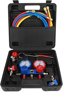 R134A Diagnoseanzeige Set, AC Diagnose Manifold Set, Fit R134A R410 R22 Kältemittel für Freon Lade AC Kältemittel Lade-Kit mit Kupplungen, 5Ft Schläuche, Kältemittel Flaschenöffner, Temp Tester