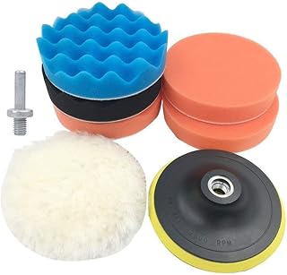 Kicpot 7 Stück 125 mm Polierpads, Auto-Compound-Schwämme und Woll-Wachs-Pads, mit M14-Bohrer-Adapter (Farbe)