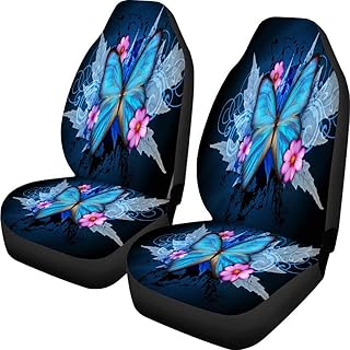 Coloranimal Auto-Sitzbezug mit blauer Blume und Schmetterling, für Vordersitz, Auto-Matten, Abdeckung für Auto und LKW, komplettes Set, 2 Stück, für Damen und Herren, Geschenk, Staub-Eimer-Sitzbezüge