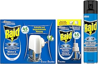 Raid Kombi-Pack (Insekten-Spray und Mücken-Stecker) gegen fliegende Insekten im Innenbereich, 3er Pack (1x400ml und 2x27ml)